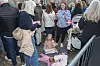 Midt på pladsen ved rytterstatuen havde familien slået sig ned med kaffe og kage for at fordrive ventetiden – og med Dannebrogsflag klar til at vifte med.