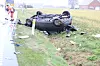 Hans bil blev kastet af vejen og endte med hjulene i vejret.
