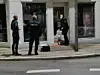 En person er set placere en mindre krysantemumbombe i en opgang.