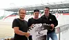Under det traditionelle “vi har skrevet kontrakt med en spiller”-foto, hvor sportschef og/eller træner typisk optræder i en akavet giv-hånd-opstilling, manglede klubbens træner Ewald Lienen nemlig. Eller, på en måde gjorde han.