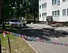 Ifølge billedmateriale fra stedet har politiet opsat afspærring rundt om et område foran en boligblok.