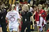 Landstræner Klavs Bruun Jørgensen havde travlt på bænken. Han skiftede allerede i første halvleg målvogter to gange og måtte tage timeout efter blot ti minutters spil for at råbe liv i sine folk.
