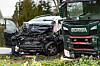 Lastbil og personbil i frontalulykke