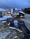 Lastbil i autoværnet