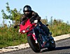 Motorcyklister snuppet med gashåndtaget i bund
