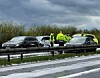 Haglvejr lukker motorvej: Otte biler kørt galt