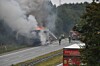 Lastbil i flammer på motorvej