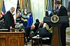 En mand faldt torsdag om under et pressemøde i det Hvide Hus.